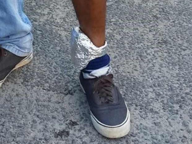 De acordo com a ocorrência, uma guarnição da PM realiza patrulhamento de rotina pela região quando avistou o suspeito transitando de bicicleta, feito a abordagem e constatado que ele estava sendo monitorado, porém com papel alumínio enrolado na tornozeleira.