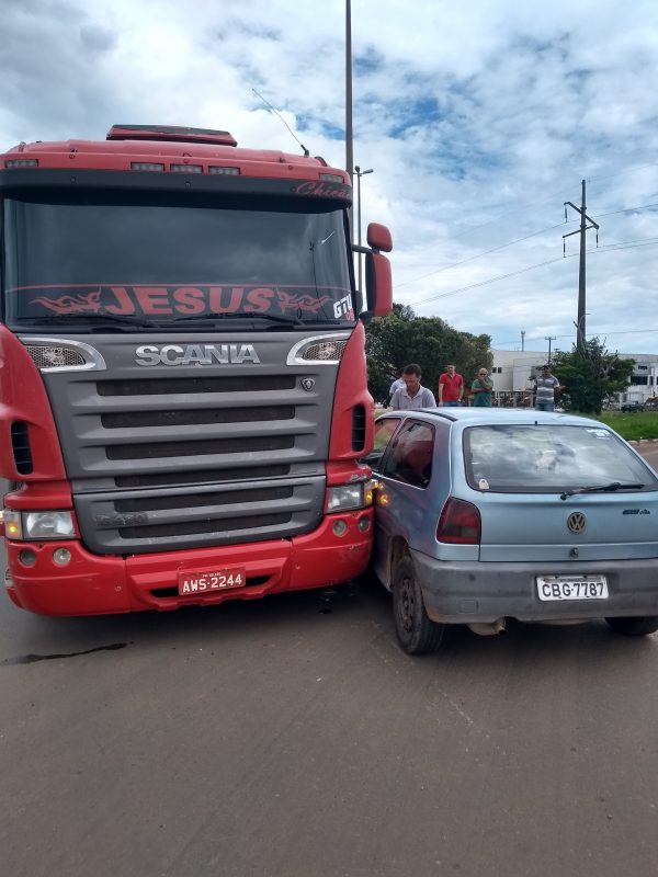 De acordo com a condutora de um Gol de cor prata, com placas de Maracai/SP, ela seguia com sua filha de seis meses e outra criança de cerca de dois anos pela BR, sentido Cuiabá, quando trocou de faixa no intuito de realizar a conversão à esquerda na rotatória, porém, uma carreta bitrem que seguia no mesmo sentido, também mudou de faixa e atingiu a traseira de seu veículo, que rodou na pista.