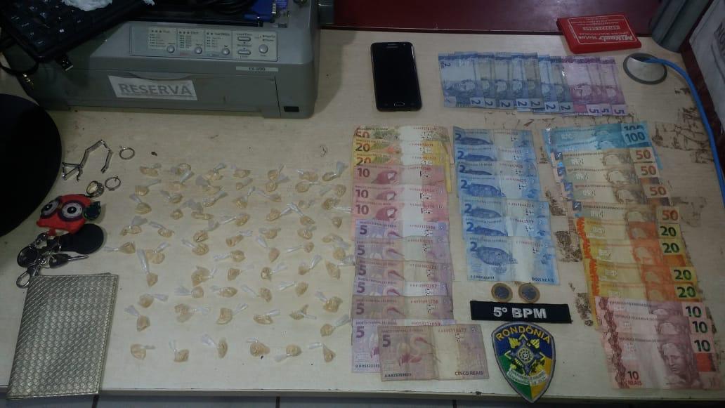 A guarnição da PM estava em patrulhamento e na Rua Buenos Aires avistou um indivíduo em atitude suspeita, que ficou nervoso ao avistar os policiais, sendo então realizada abordagem. Com ele foi localizada uma porção de crack e ao ser questionado sobre onde comprou a droga, afirmou que havia adquirido de um casal próximo ao Bar Anacondas, na Avenida Jorge Teixeira próximo à rodoviária. Os policiais foram até o local indicado pelo rapaz e encontraram um casal em frente uma vila de apartamentos, sendo a mulher Helen R., que estava com 56 anos porções de crack escondidas em sua cintura. Já com Rudson R., mais três porções da mesma droga. Ele passou nome falso, mas foi verificado seu verdadeiro nome, sendo constatado que ele estava foragido.