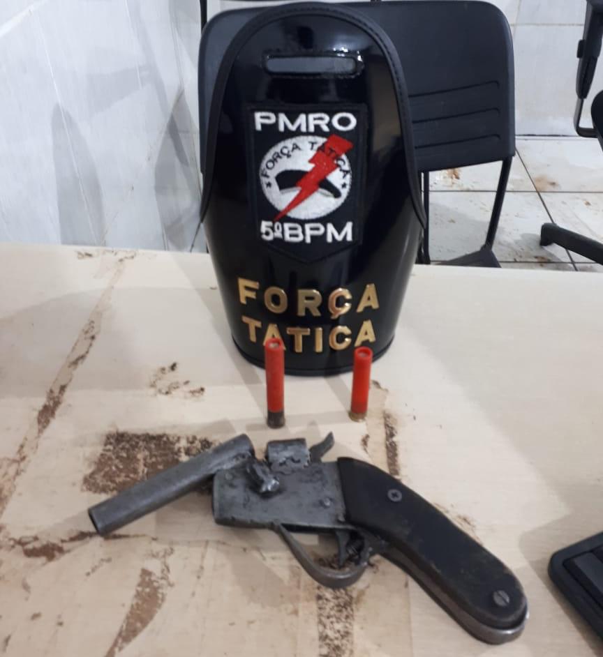 Já na Rua dos Andrades com Rua Chico Mendes, a dupla caiu em um buraco e foi detida pelos policiais. Durante revista pessoal, foi encontrado na cintura de Nicolas, que estava na garupa, uma arma de fabricarão caseira, calibre 36, além de duas munições deste calibre. Com Adriel nada foi localizado.