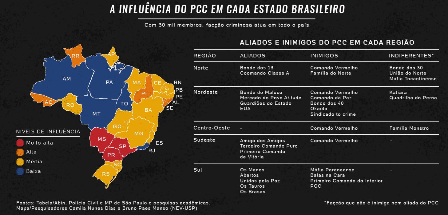 Veja o mapa da influência do PCC no norte e restante do Brasil;