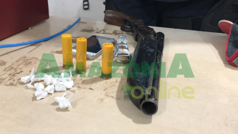 De acordo com os policiais militares do 1°BPM, eles realizavam patrulhamento de rotina pela Avenida Sete de Setembro quando avistaram um automóvel modelo HB20 branco estacionado em frente da agencia em atitude suspeita, a guarnição se aproximou e o automóvel saiu em fuga, possivelmente com um suspeito dentro, outros dois jovens permaneceram no local e após avistar a PM tentaram correr jogando uma mochila, a dupla acabou sendo interceptada e foram encontrados dentro da mochila, uma escopeta calibre 20 e varias porções de cocaína.