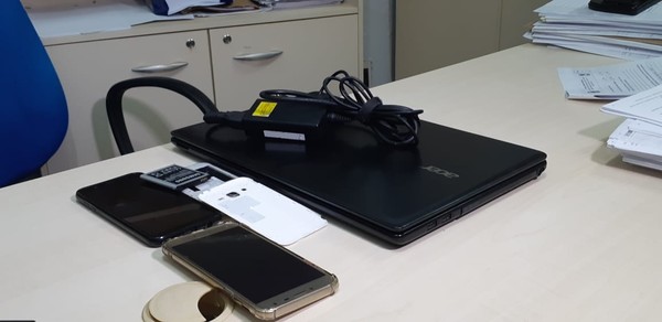 Notebook e celulares foram apreendidos na casa de educador — Foto: Cássia Firmino/G1