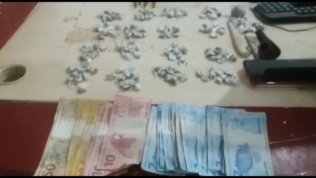 Durante revista pessoal nos meliantes, foi encontrado quase 70 porções de Maconha e uma pistola calibre 765 contendo 11 munições intactas que era usada pelos suspeitos para proteger a boca de fumo. Foi verificado que um dos suspeitos é foragido da justiça e todos receberam voz de prisão e foram conduzidos para a Central de flagrantes onde responderam pelos crimes correspondentes a ocorrência policial.