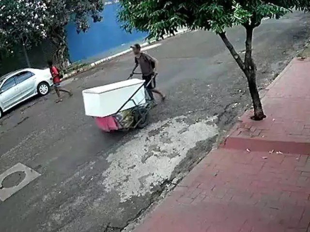 Os policiais realizavam patrulhamento pela Avenida 08 de Dezembro, no bairro Jardim Esmeralda, quando avistaram duas pessoas em uma bicicleta carregando uma geladeira. O casal ao notar a aproximação da viatura, largou a geladeira e correu, a mulher foi alcançada. Francisca N. S. P, de 25 anos, disse que estava ajudando ‘Marcelo’ a carregar a geladeira furtada. A casa situada a Avenida 08 de Dezembro foi invadida, pois o morador de 31 anos não estava em casa, havia dormido em outra casa. O morador disse que também foram furtados de sua casa: 01 TV e 14 polegadas, 01 botijão de gás de 13 kg, 01 colchão de casal e várias peças de roupas. A geladeira foi restituída ao proprietário.
