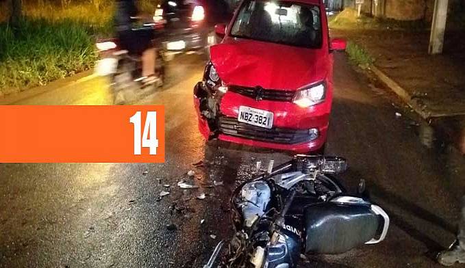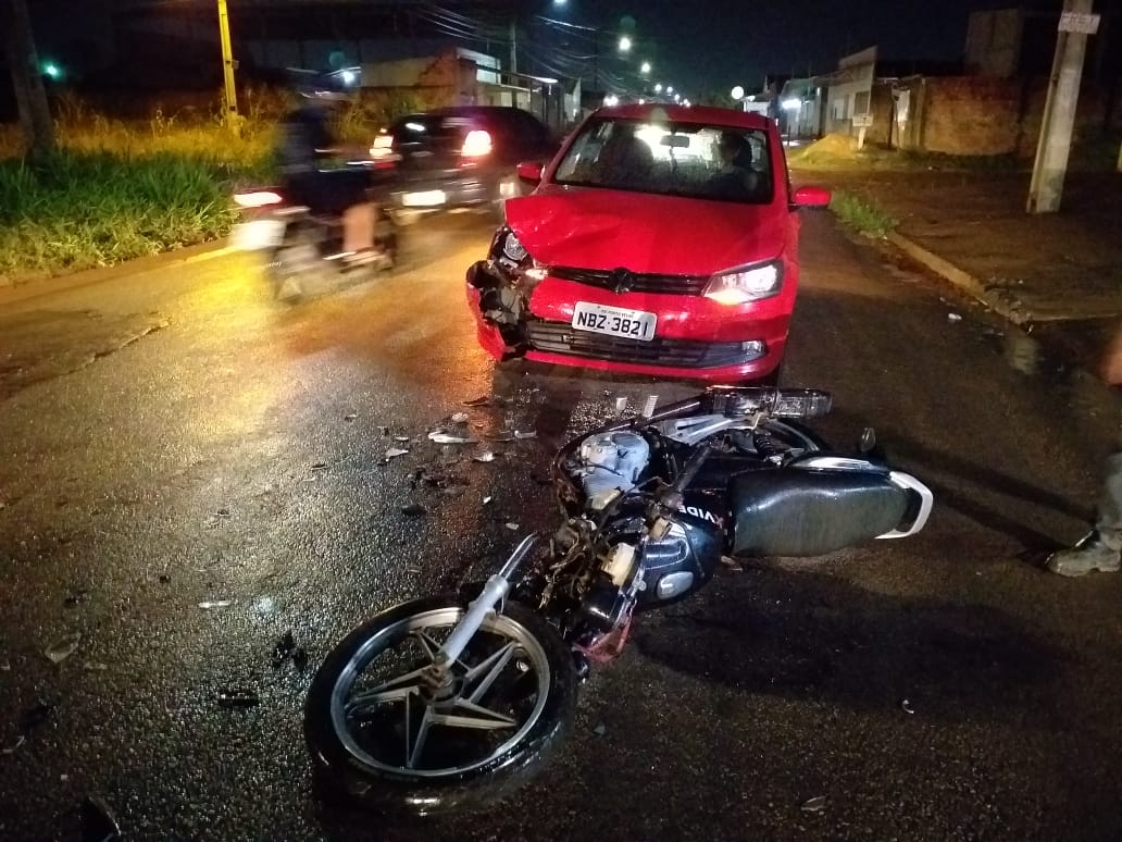 Apesar da gravidade de um acidente de trânsito que foi registrado na noite desta quarta-feira (06), um motociclista sofreu leves escoriações após colidir frontalmente contra um automóvel na Avenida Benedito Inocêncio, bairro Lagoinha, região leste de Porto Velho.