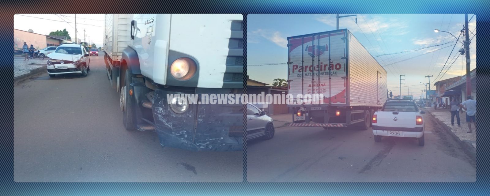 Um idoso de aproximadamente 55 anos, ficou com leves escoriações após avançar a preferencial e bater contra um caminhão baú no final da tarde desta segunda-feira (06), no cruzamento das Ruas Alexandre Guimarães e Antônio Violão, bairro Socialista, zona leste de Porto Velho.