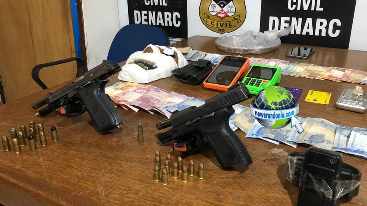 Uma ação de policiais civis do Departamento de Narcóticos (Denarc) resultou na prisão de Rodrigo F. P., 35, vulgo “Beto”, e Ueliton M. de O., 30, vulgo “Ferrugem”, flagrados com pistolas e drogas no bairro Cai N’água, centro da capital.