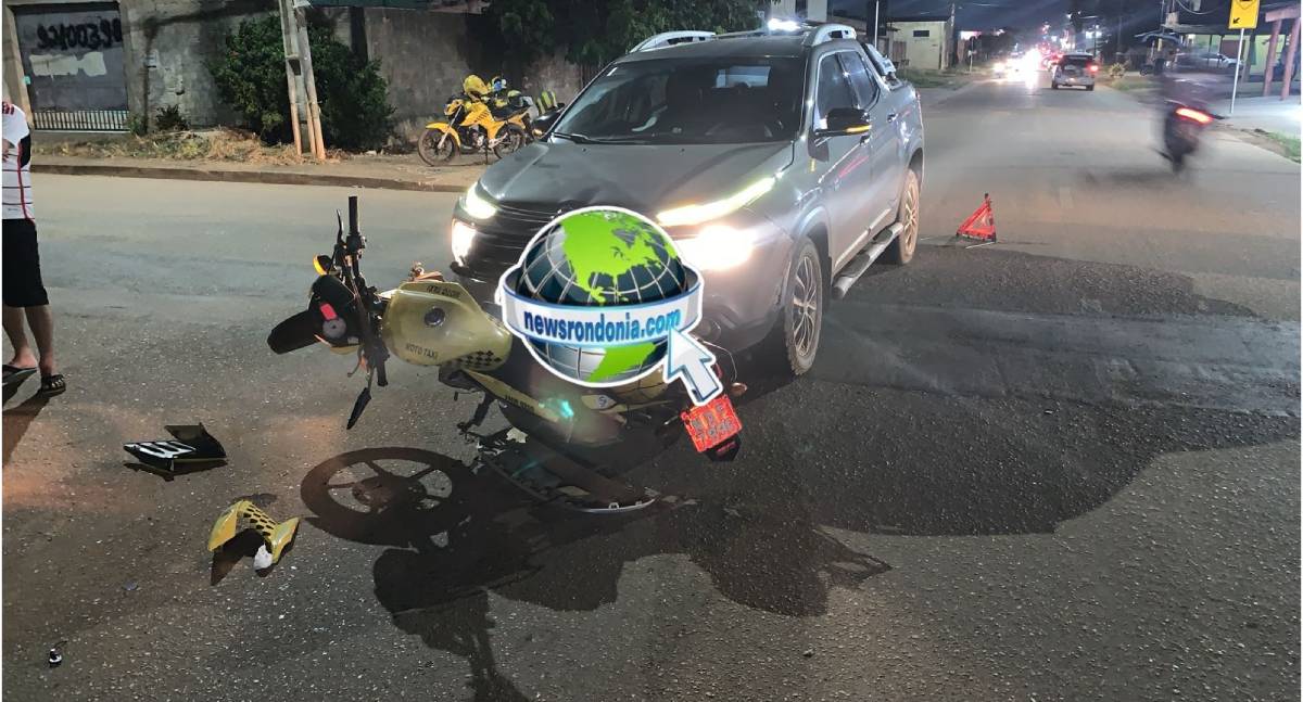 Um grave acidente envolvendo uma moto e um carro modelo Fiat Toro ocorreu na noite deste domingo (24), deixando um homem ferido no cruzamento da Avenida Pinheiro Machado com a Rua Daniela, no bairro Igarapé, zona leste da capital.