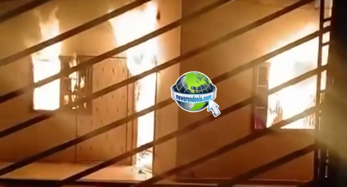 Um incêndio de grandes proporções mobilizou equipes do Corpo de Bombeiros na noite desta terça-feira (26), na Rua do Clarinete, bairro Cohab, zona sul de Porto Velho.