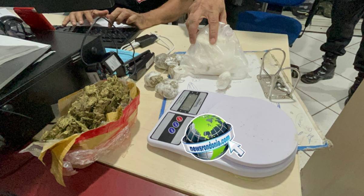 Com ele, foram encontradas porções grandes de maconha, cocaína e outras menores, além de uma balança de precisão e quase R$ 1.000 em dinheiro.