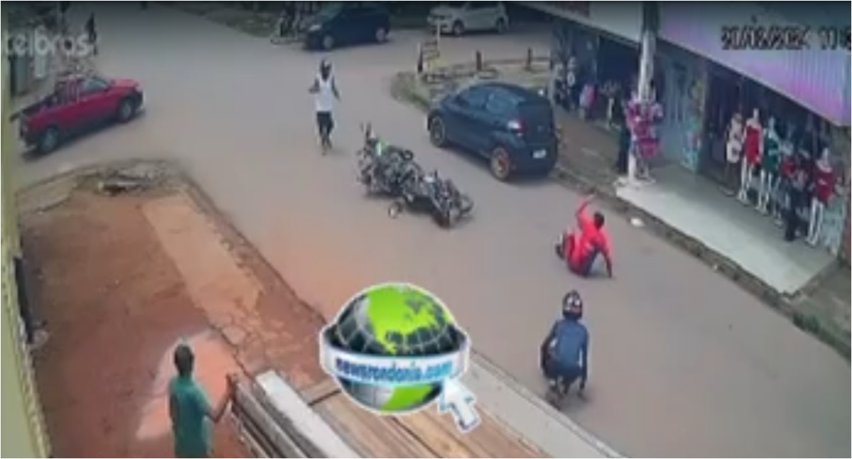 Imagens de uma câmera de segurança registraram quando um motociclista que transitava pela Angico, invade o cruzamento e acaba causando a colisão com um moto aplicativo com passageiro.