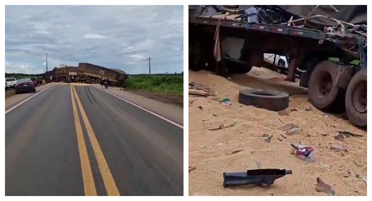 Um grave acidente envolvendo três carretas foi registrado neste domingo na BR-364, no trecho entre Cacoal e Presidente Médici, em Rondônia. A colisão chamou a atenção pela intensidade do impacto e pelas consequências na pista, que ficou completamente interditada para o atendimento da ocorrência.