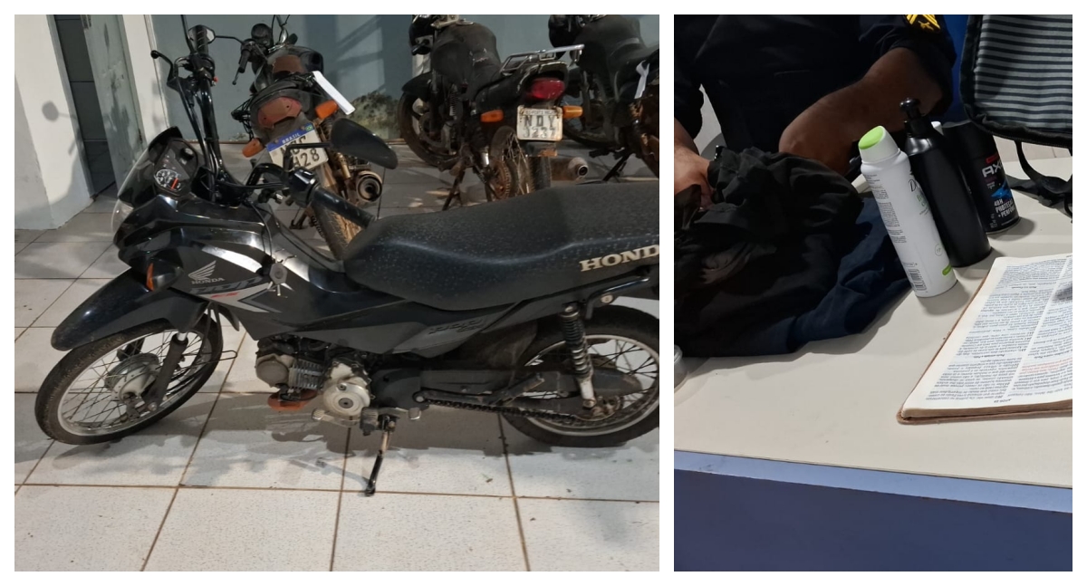 No local, os policiais encontraram o menor R. H., de 17 anos, com um aparelho celular de origem ilícita. Também foi abordado M. S., de 32 anos, que estava em posse da motocicleta e confirmou ter se apoderado do veículo e do celular, informando ainda que já havia vendido o aparelho. O menor relatou que adquiriu o celular pelo valor de 10 reais.