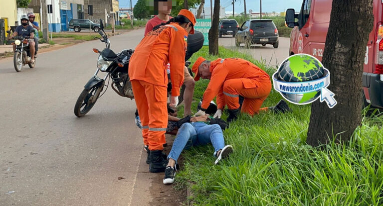 Atropelamento deixa motociclista ferida na Avenida Guaporé