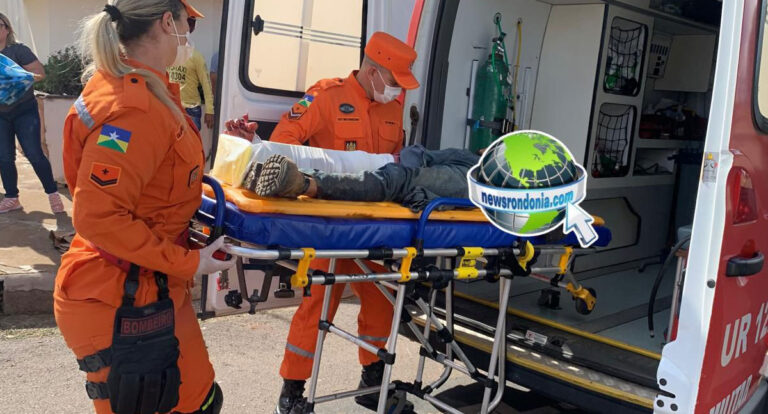 Uma equipe do Samu foi acionada e prestou os primeiros socorros, levando o ferido para atendimento médico.