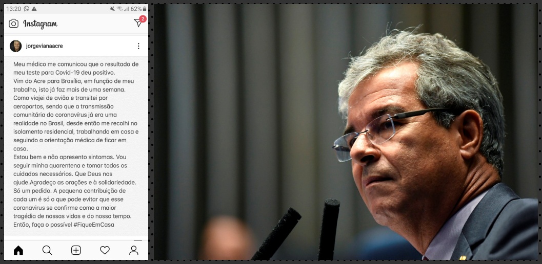 O ex-senador Jorge Viana divulgou em sua conta no instagram na tarde desta segunda-feira, 23, que o teste que fez para o coronavírus (Covid-19) deu positivo. O petista informou que está em Brasília a pelo menos uma semana em função do trabalho.