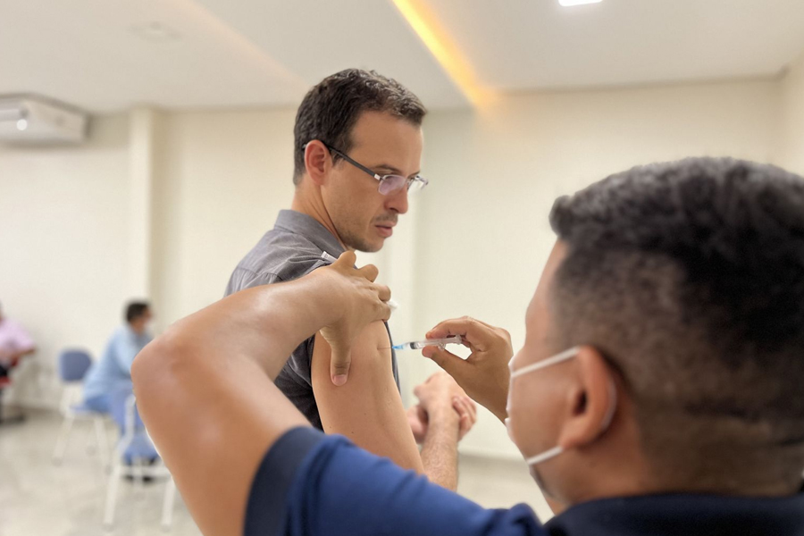 Com o objetivo de promover a saúde e o bem-estar do quadro de servidores, a Secretaria Municipal de Saúde (Semusa) realizou na quarta-feira (29) uma campanha de vacinação interna. A ação aconteceu na sede da Semusa e foi promovida pelo Departamento de Saúde do Trabalhador, quando 176 servidores foram imunizados com as vacinas de rotina da covid-19 e a bivalente, além dos imunizantes contra a influenza, tríplice viral, febre amarela, tétano e hepatite B.