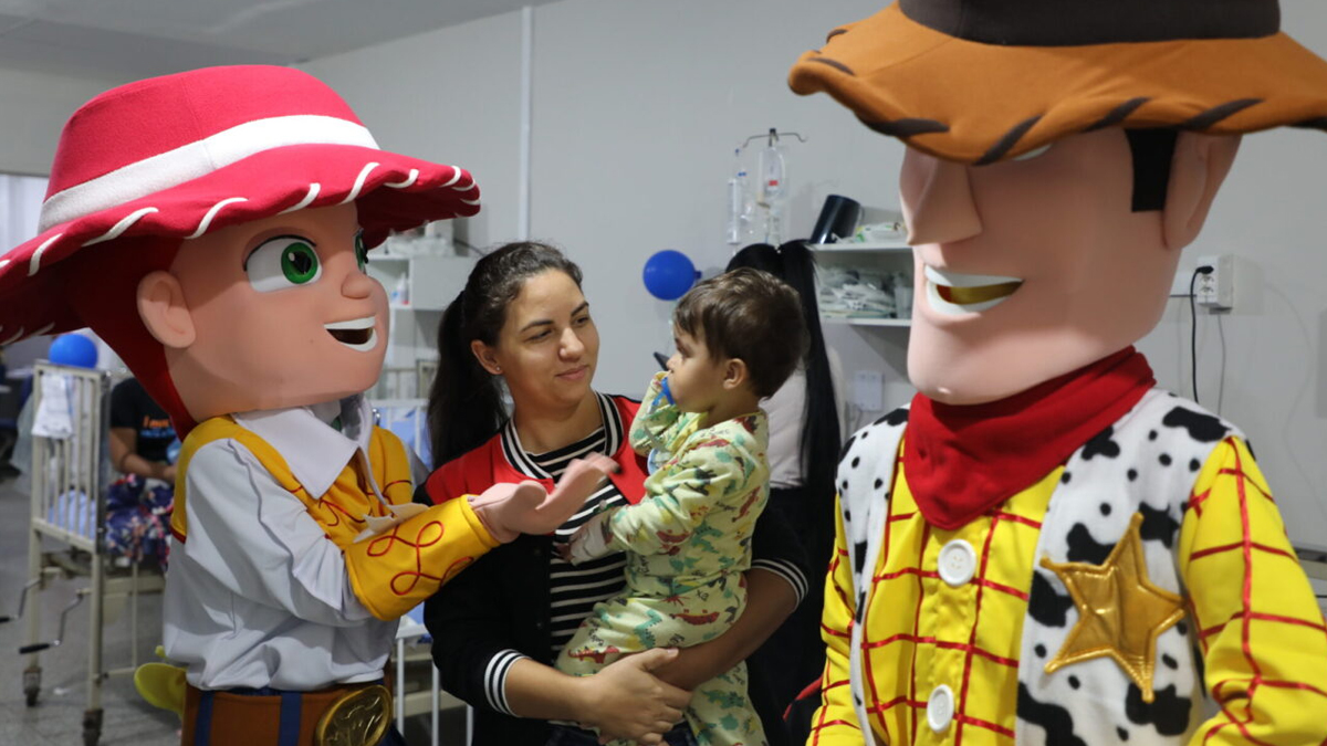 A Associação do Ministério Público de Rondônia contribuiu com animadores fantasiados de personagens da animação “Toy Story”, que realizou visitas em todas as enfermarias cumprimentando e entregando presentes para os pequenos.