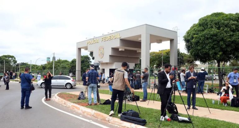 Atos opostos marcam a entrada da Superintendência da PF em Brasília, onde o ex-presidente está preso preventivamente. A deputada Bia Kicis compareceu ao local e a prisão foi classificada como “perseguição política”.