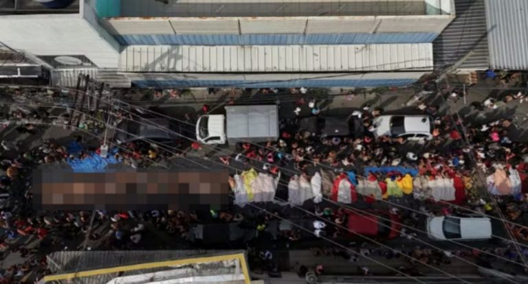 Ao longo da madrugada desta quarta-feira (29), corpos de homens foram retirados da mata da Serra da Misericórdia e levados para a Praça São Lucas, no Complexo da Penha, para facilitar o reconhecimento por parentes.