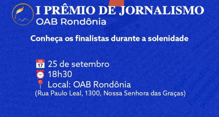 L Publicado em 21/08/2025 às 11:43 Faltam 10 dias para o fim das inscrições do Prêmio de Jornalismo da OAB Rondônia Concurso vai premiar trabalhos em cinco categorias; inscrições seguem até 31 de agosto.