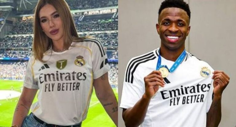 Atacante do Real Madrid e a influenciadora digital oficializaram o relacionamento nas redes sociais após dias em Mônaco. O post romântico mostra cama decorada com as iniciais “V”.